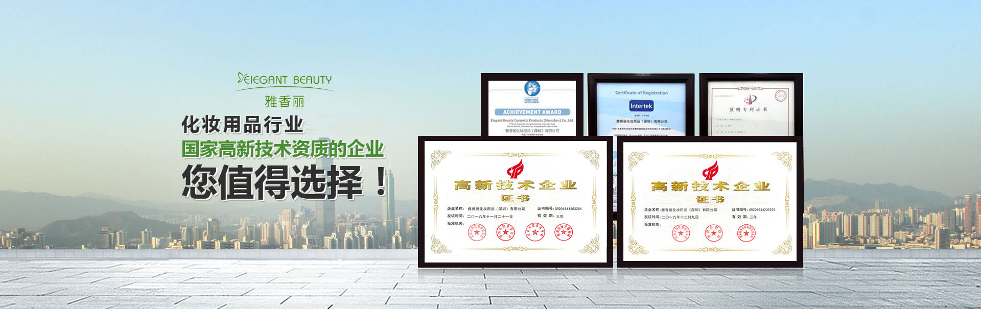 占地面積一萬余平方米,專業技術員工300余人,雅香麗憑借著在行業內的專業化、精細化、特色化、新穎化、可持續化,榮獲國家"高新技術企業"、"深圳市專精特新中小企業"等重量級認證。
